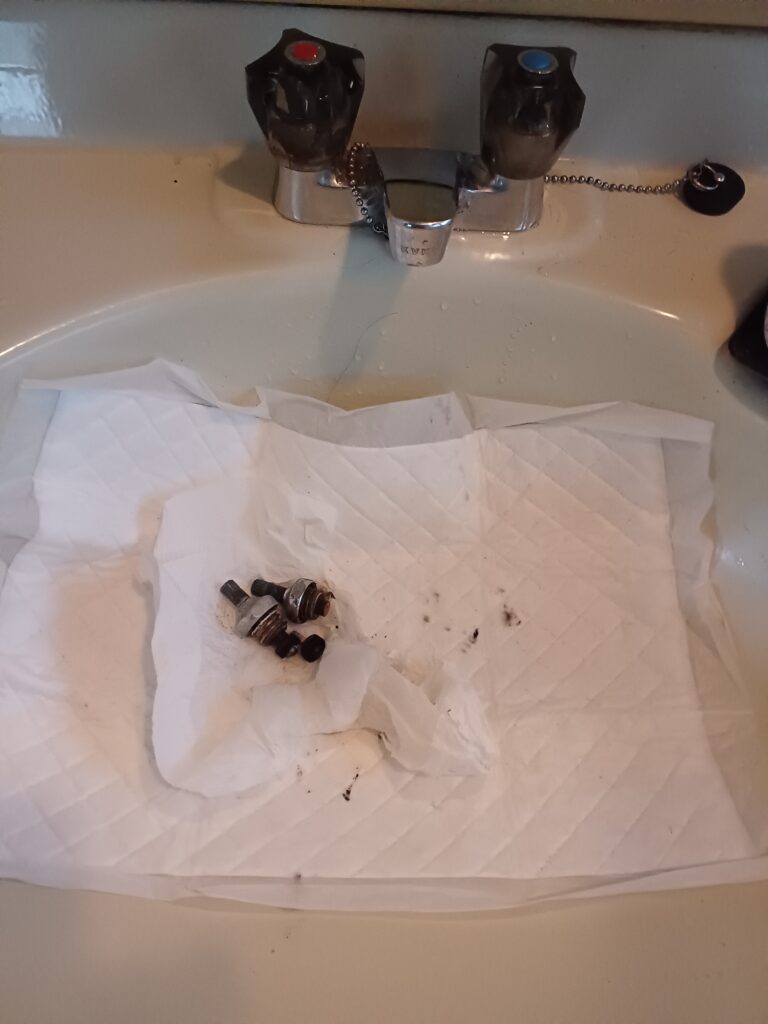 バラしてみるとかなり傷んでいる感じでしたのでスピンドルとコマパッキンを交換しました。