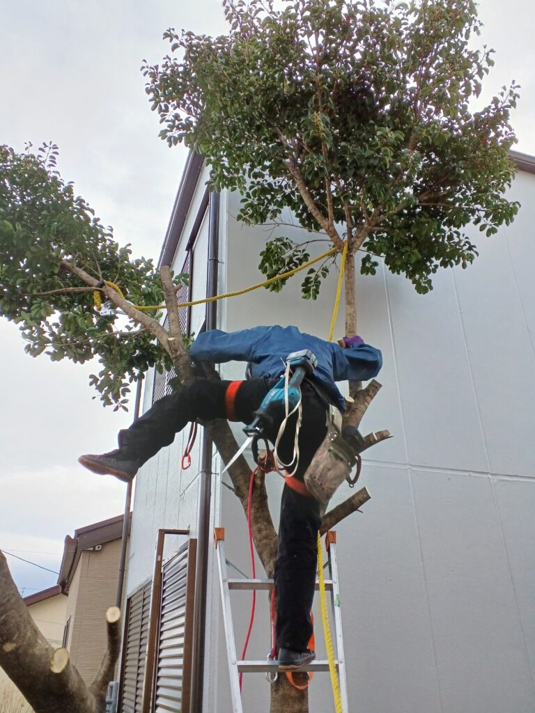 特殊伐採のお手伝いをしました。 2025.12.26 名古屋藤塚店の多賀オーナーのご依頼で特殊伐採のお手伝いをしました。 さすが多賀オーナーです👏難易度高い伐採を無事故でキレイに仕上げされました◦°˚\☺/˚°◦ しかもすごいスピードで丁寧に午前中で終わってしまいました👏