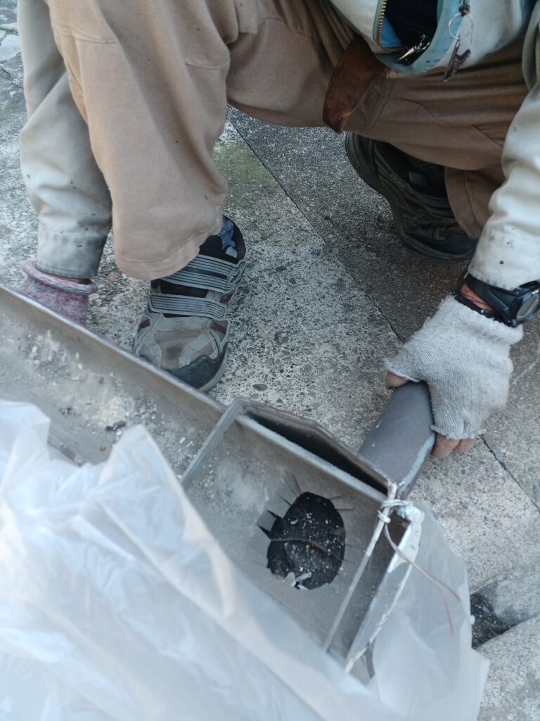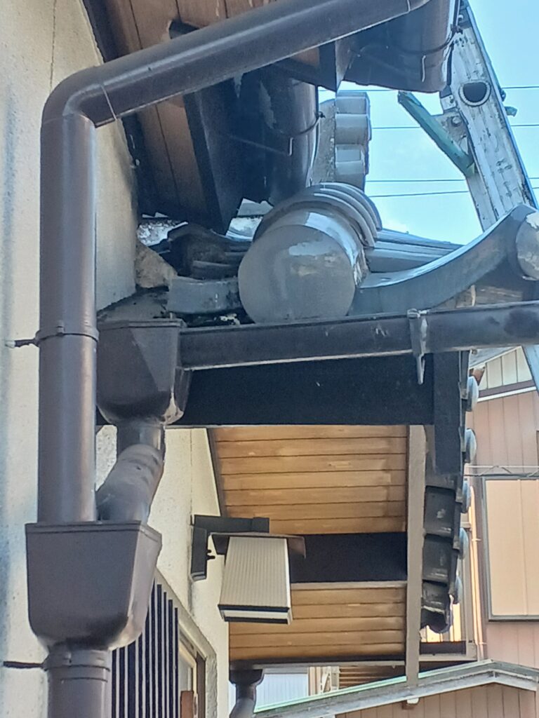 雨が降ると雨樋から溢れて玄関先がビショビショになるから見て欲しいとのこと。