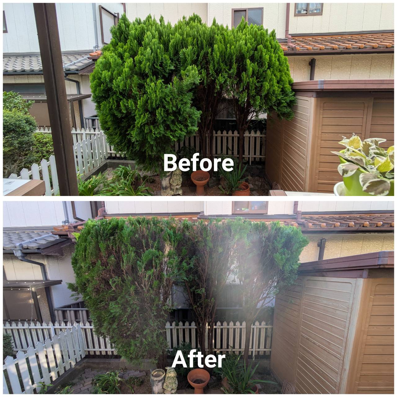 梅の木を伐採しました。 リピーターのお客様からのご依頼です。 50年経ってしまい、最近お世話もしなくなったら車庫の上がすごいことに。 伐採して欲しいとの事です。 スッキリしたと喜んでいただきました✨ 続きを読む